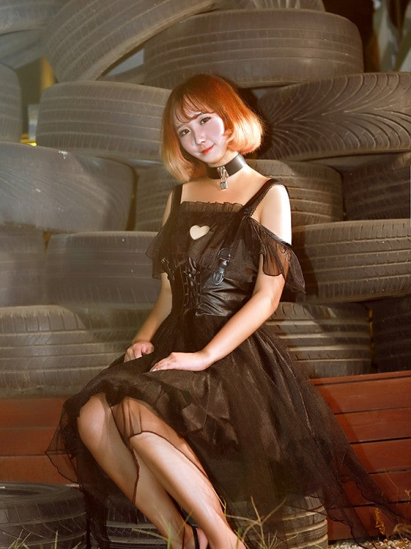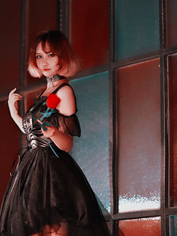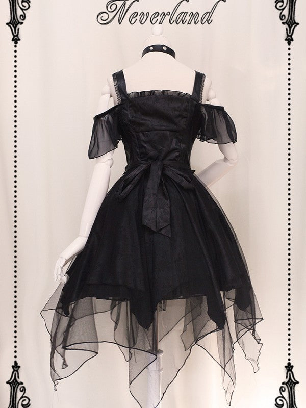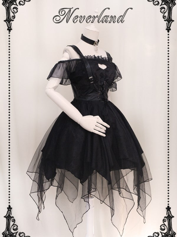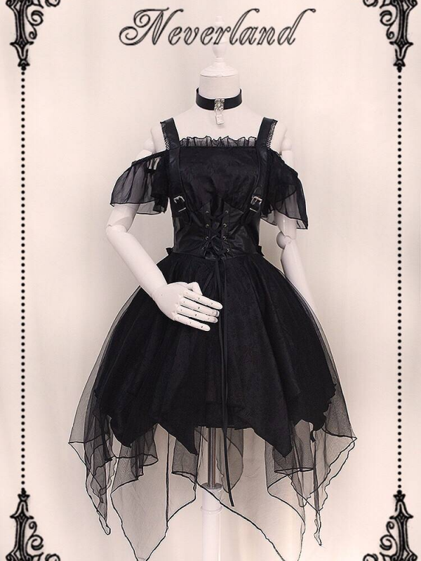 Ash Gothic Jumperskirt Black irregular mesh hem Lolita Dress