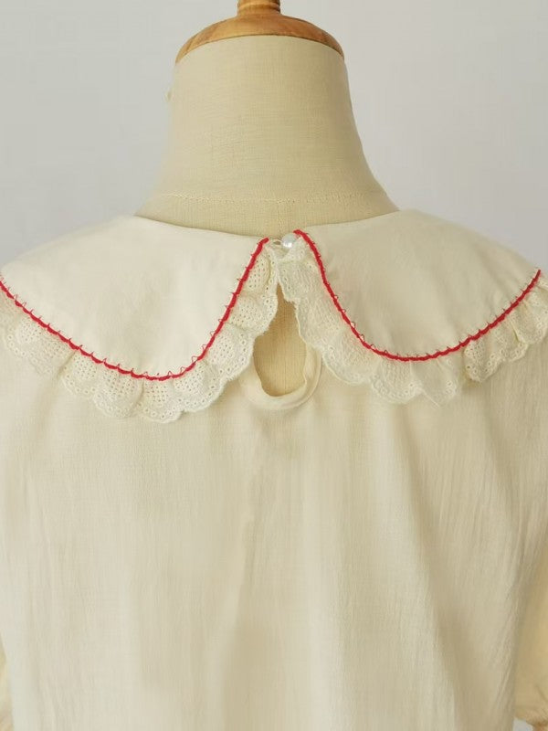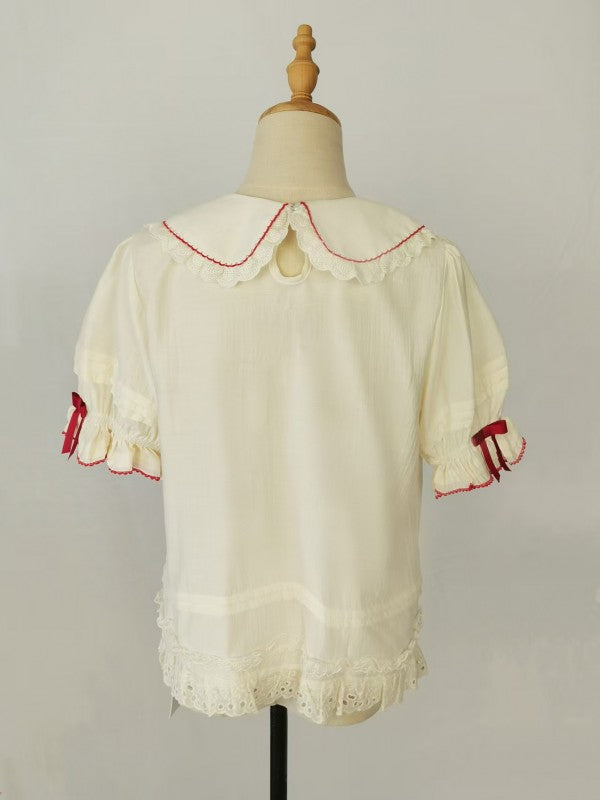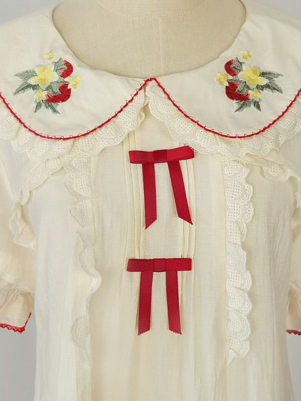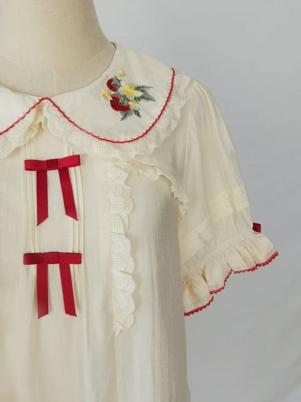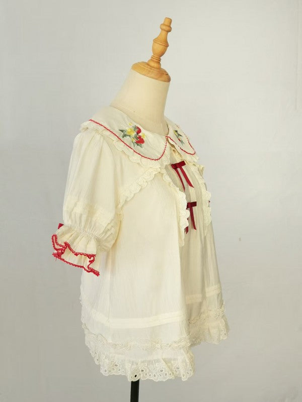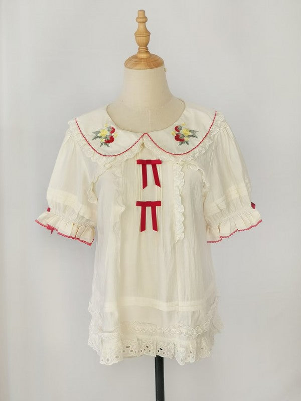 Bow Lolita Doll Collar Cute Strawberry Embroidery Blouse