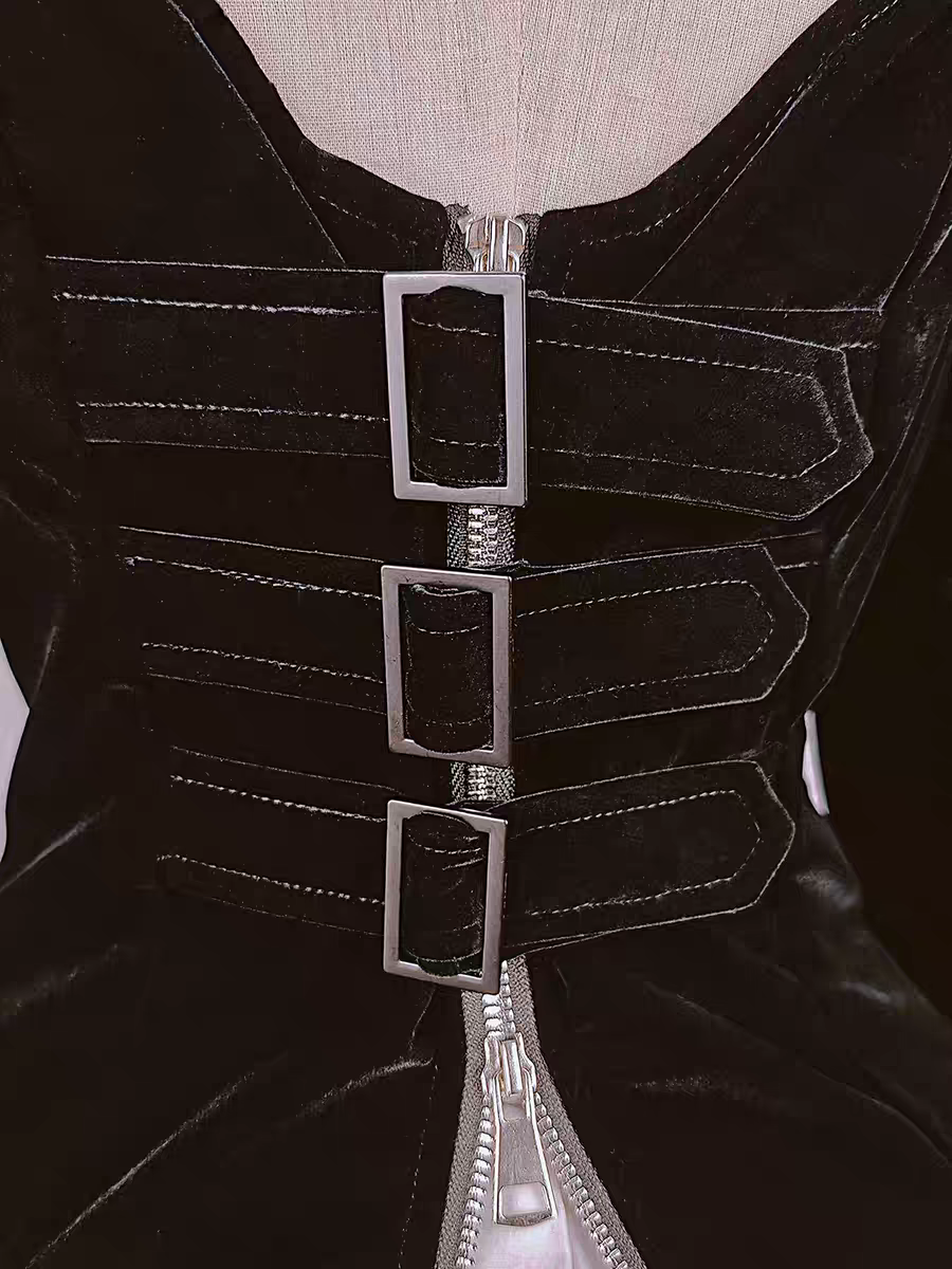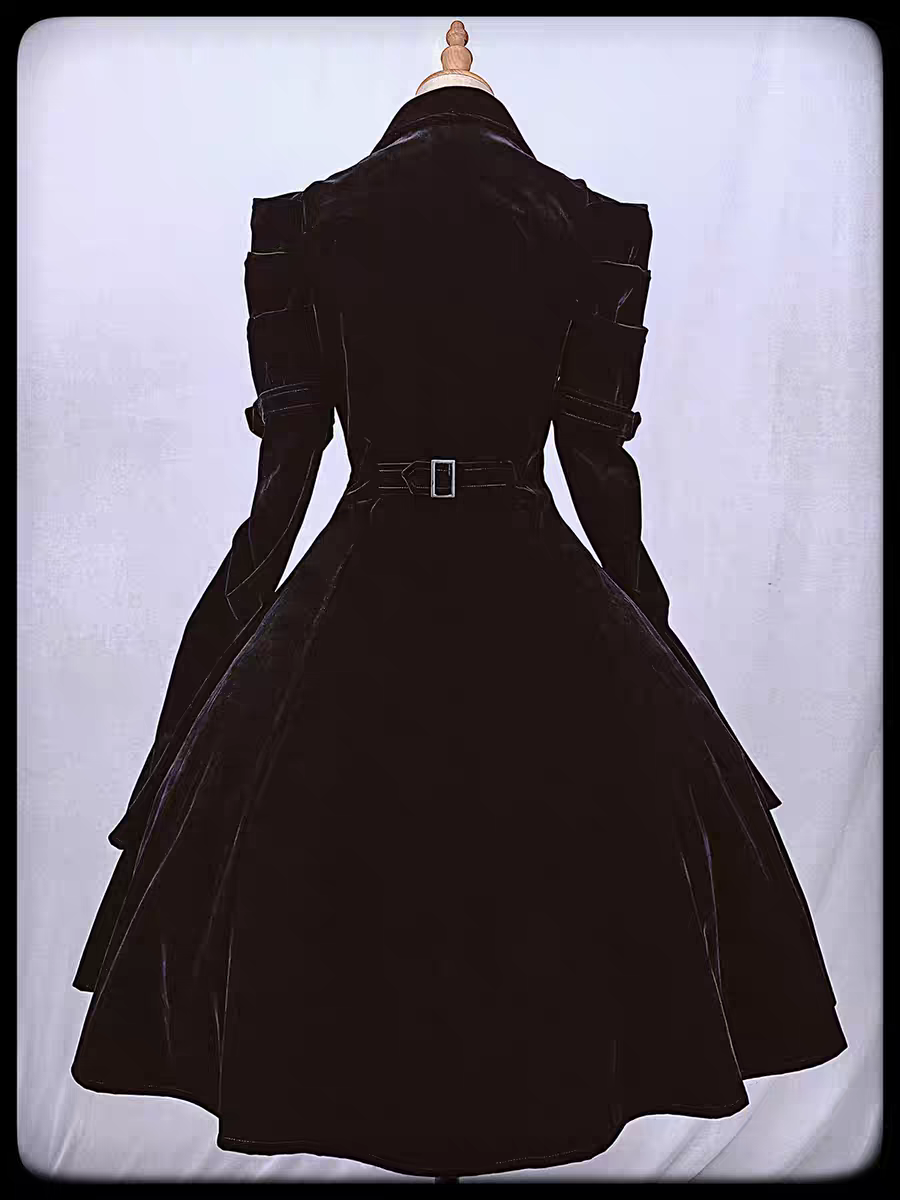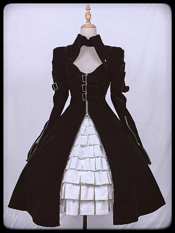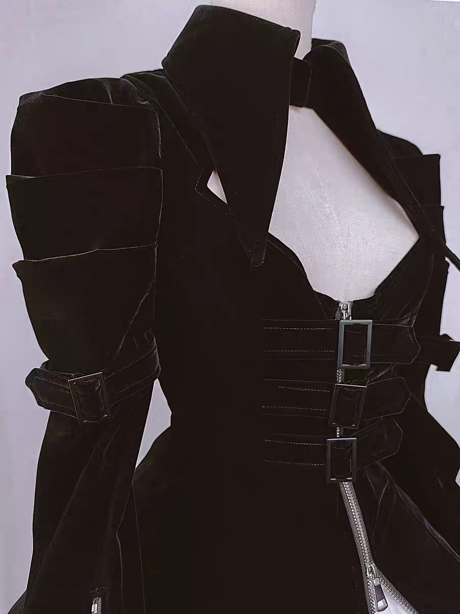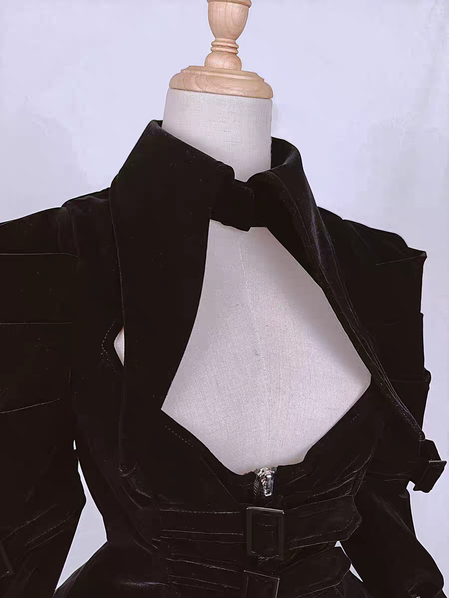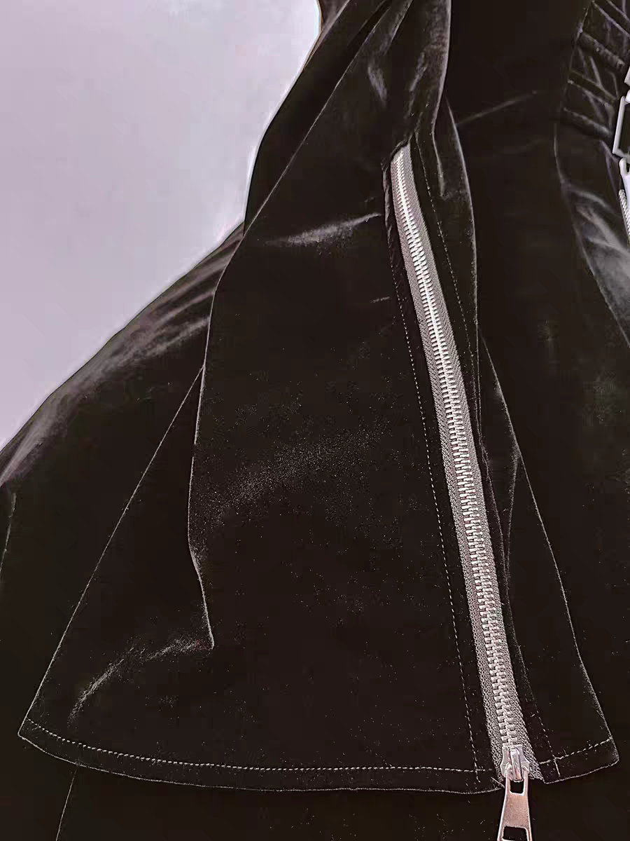 【 Dark Night Mission 】 Long Velvet Tip Collar Zipper Buckle Coat