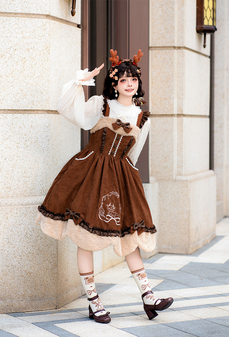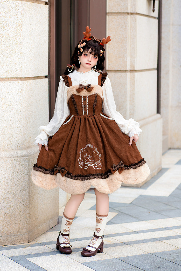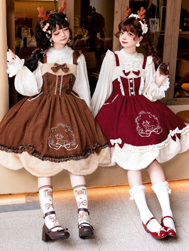 Lolita [Akino Antlers] JSK Embroidered Corduroy Dress for Christmas
