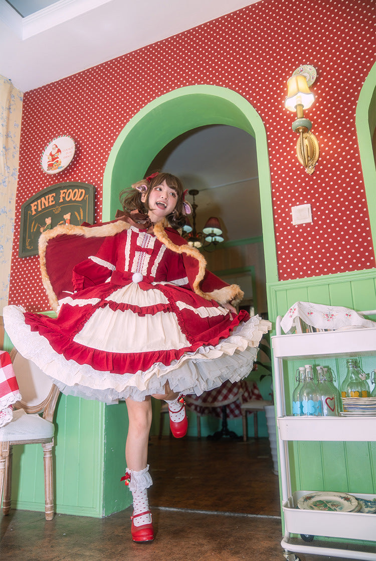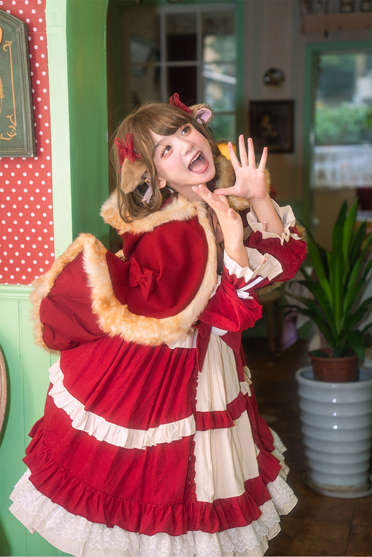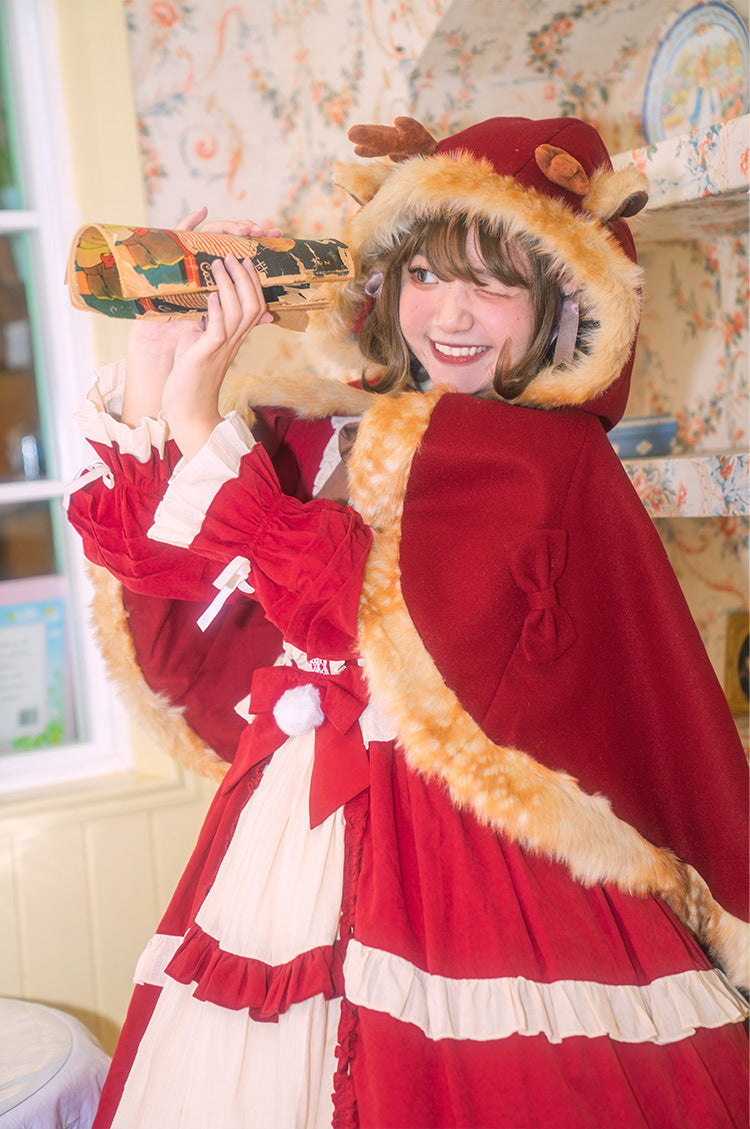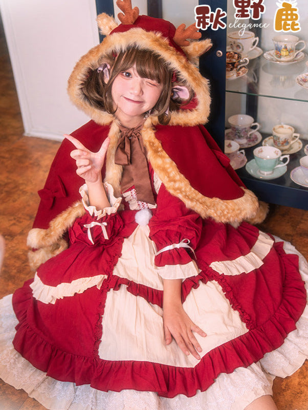 Lolita [Akino Deer Cry] Autumn/Winter Lolita New Year Christmas Cloak &OP Set