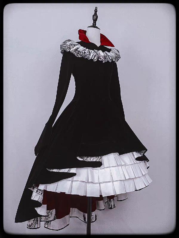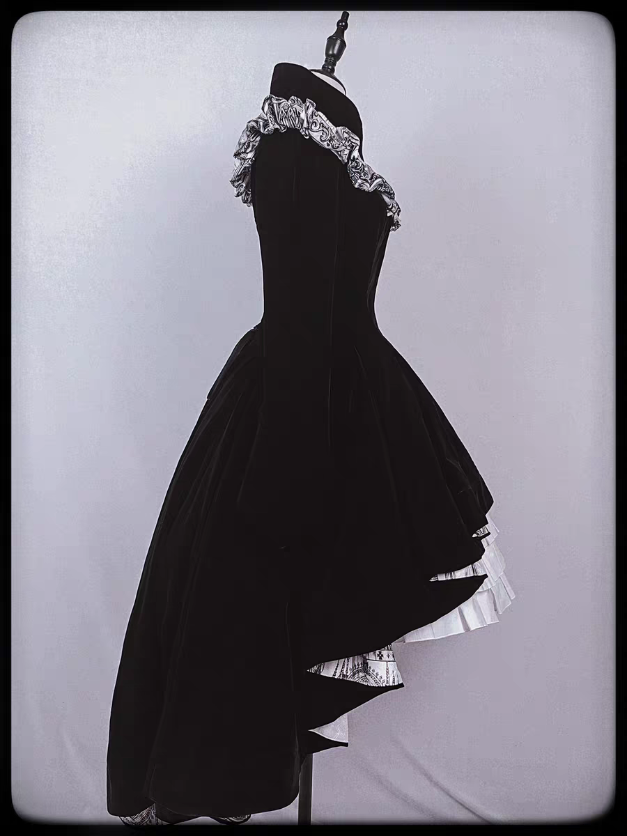 【Nocturne of the Dead】Long velvet irregular hem dress