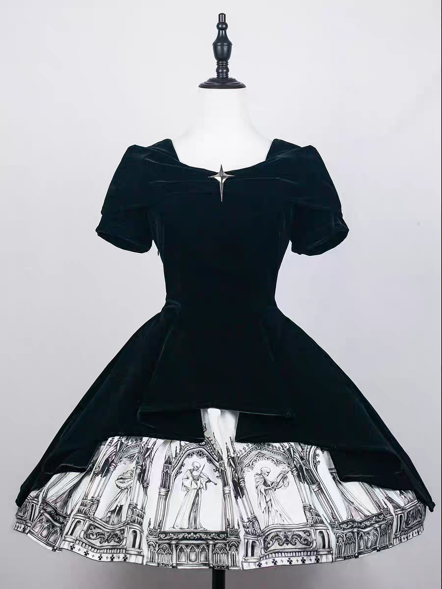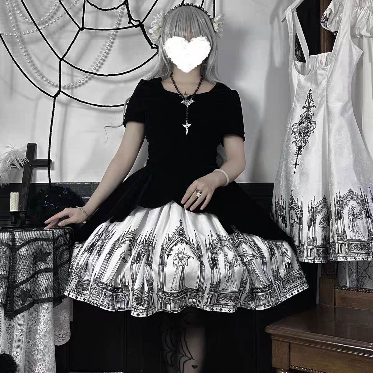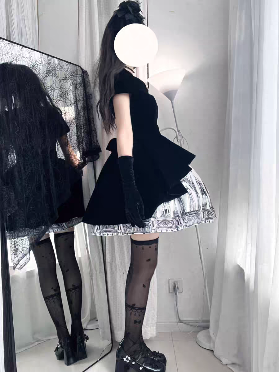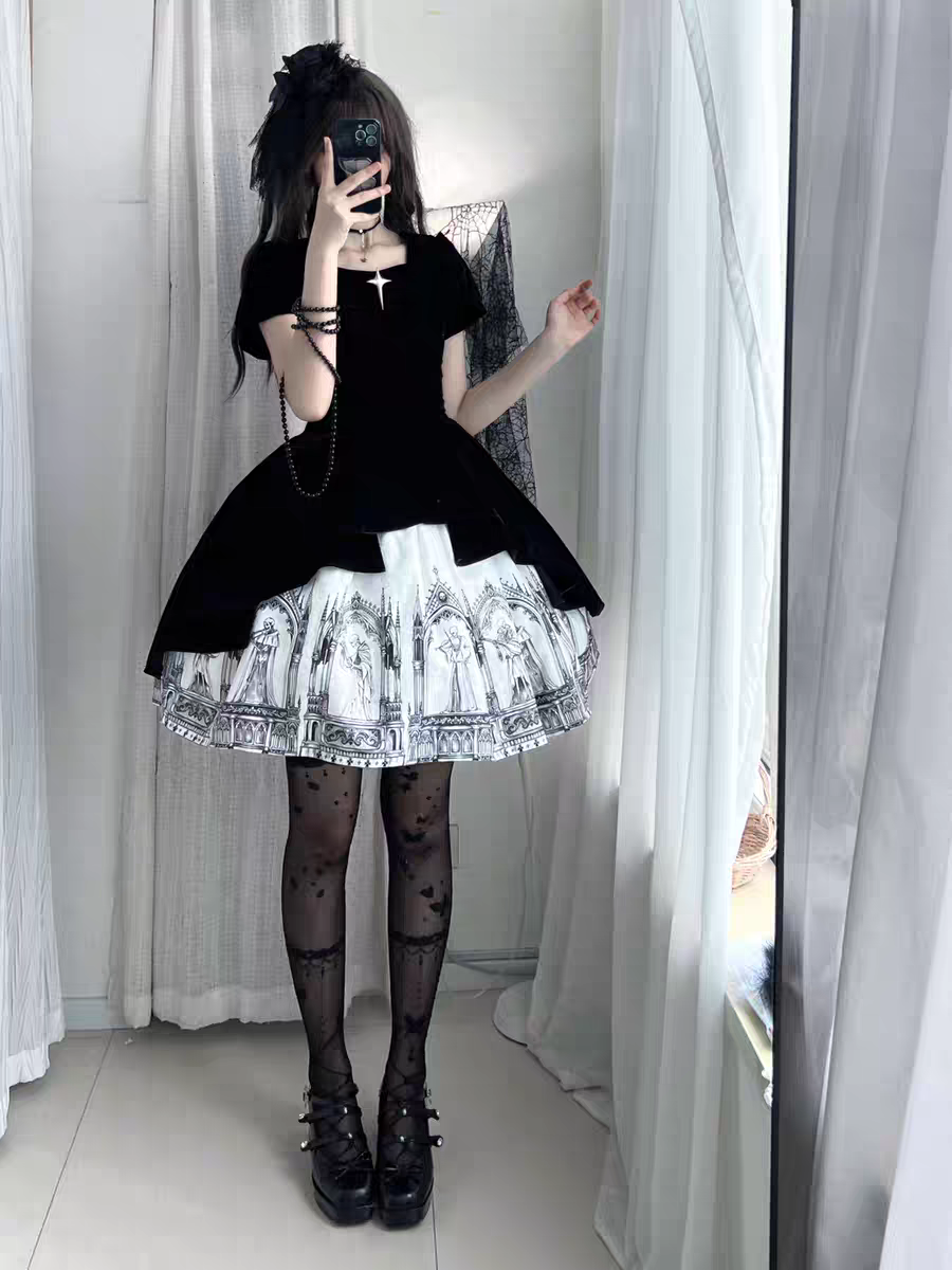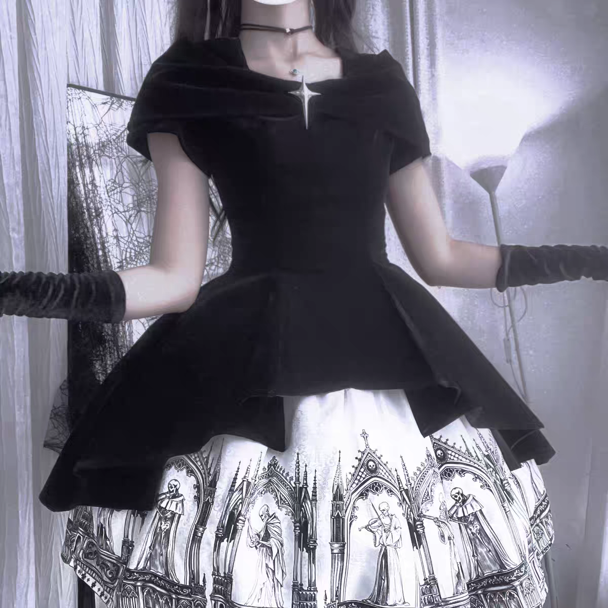 【Nocturne of the Dead】Velvet irregular hem skirt