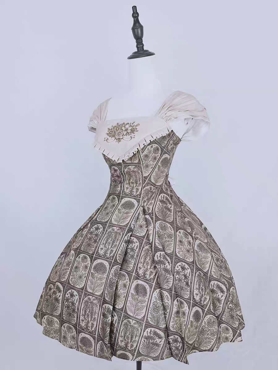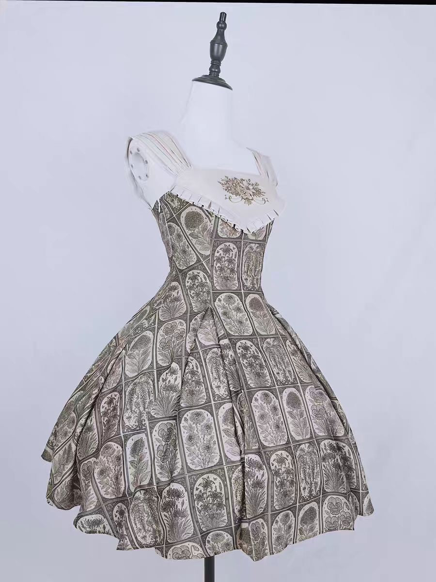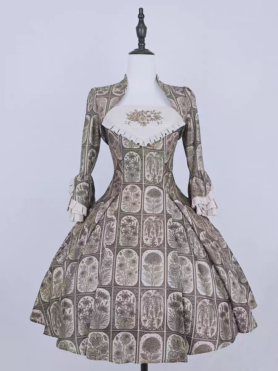 Plant Catalog Concise JSK I-Fold Slimming Original Printed Dress
