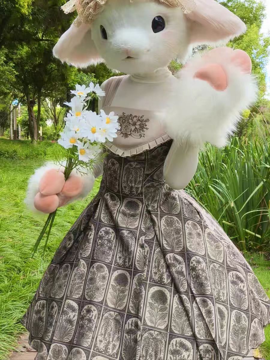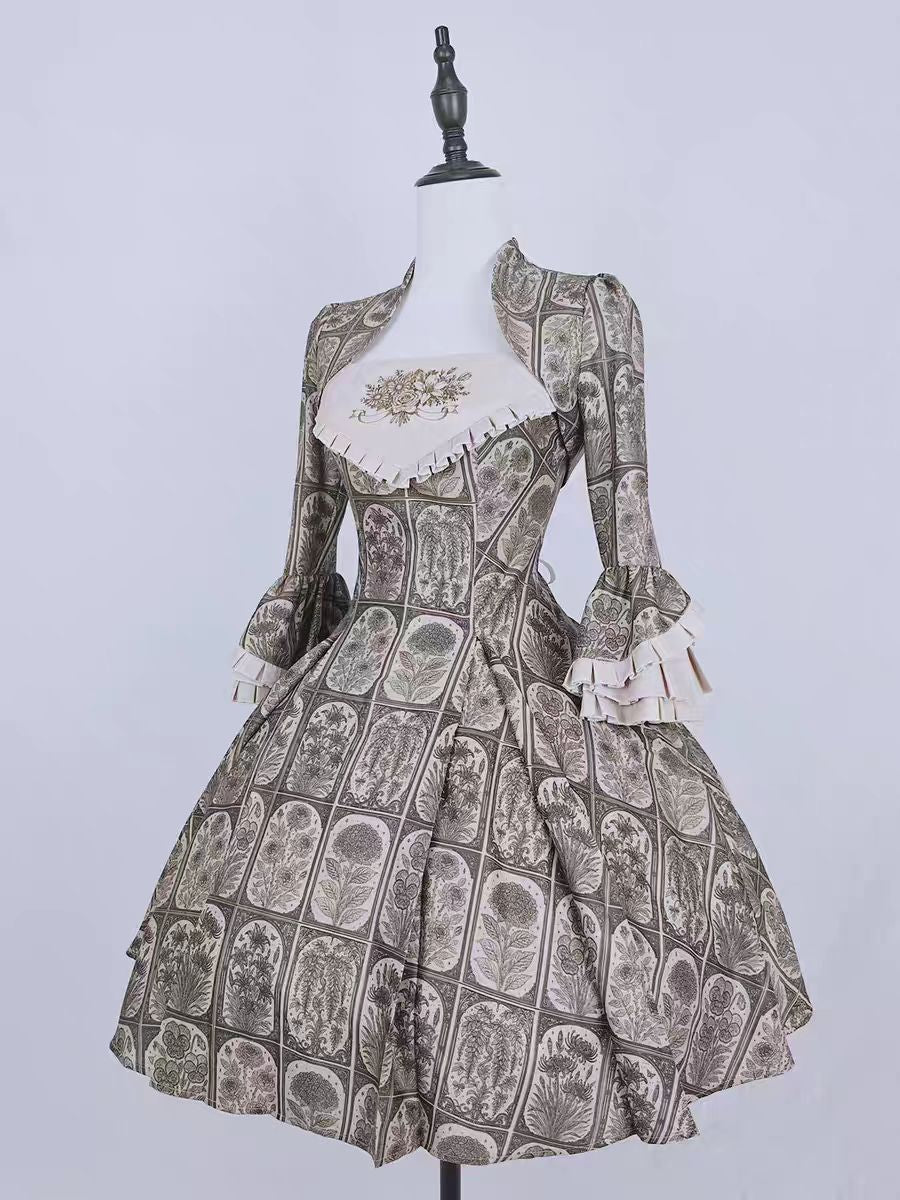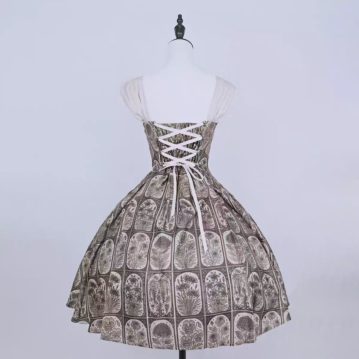Plant Catalog Concise JSK I-Fold Slimming Original Printed Dress