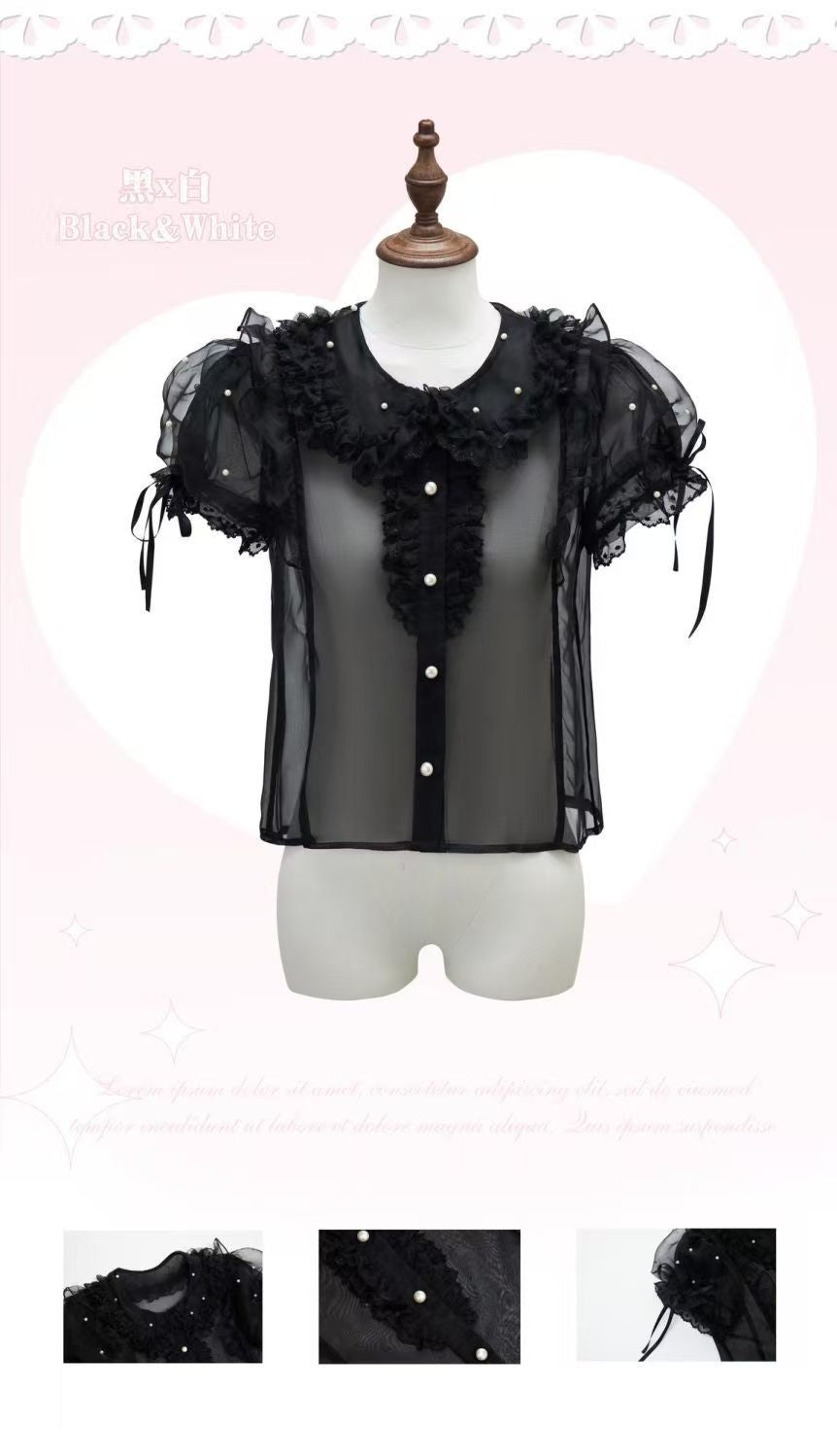 The pictures shown are samples. Some details of the item (such as buttons, lace) may have partial modifications depending on the