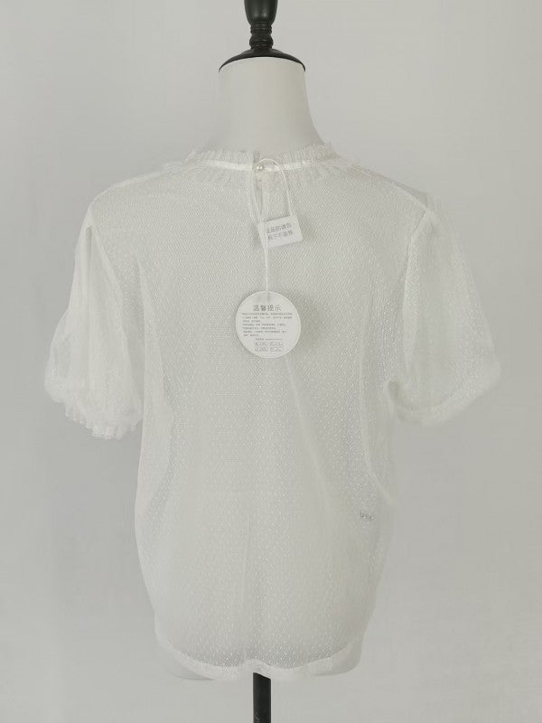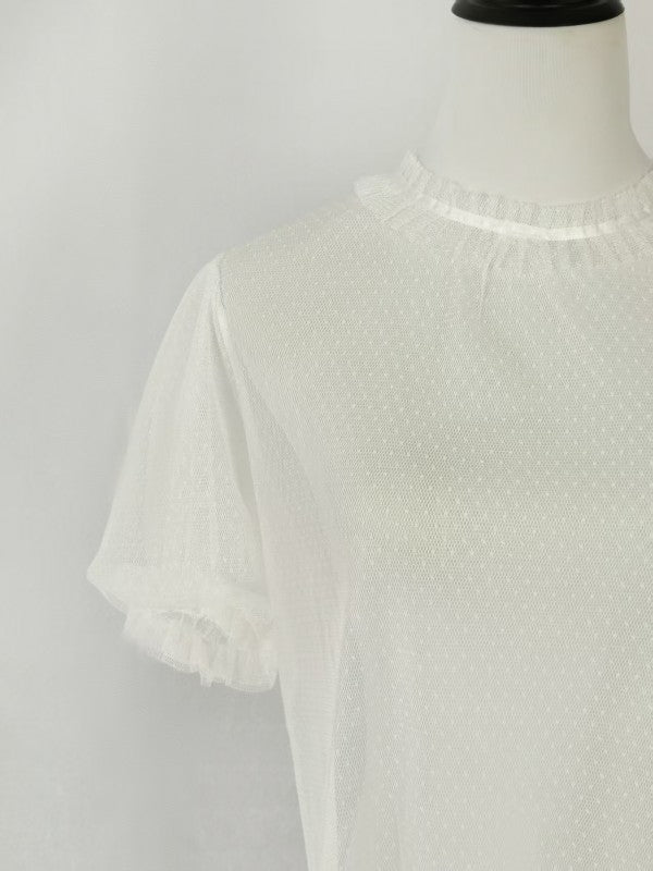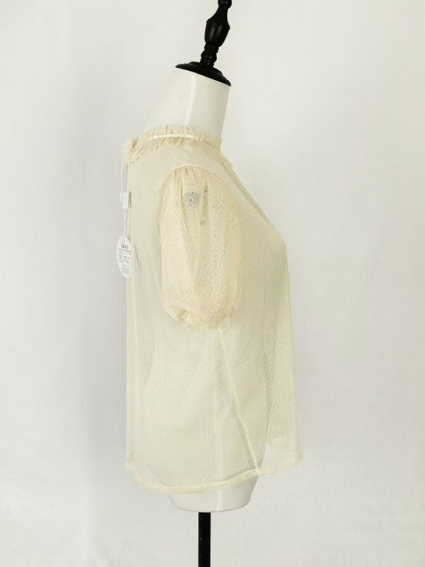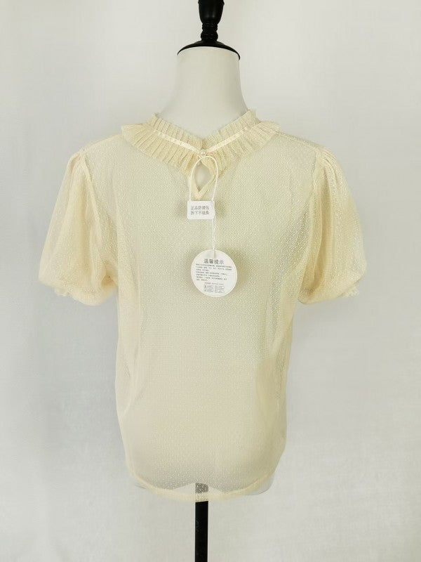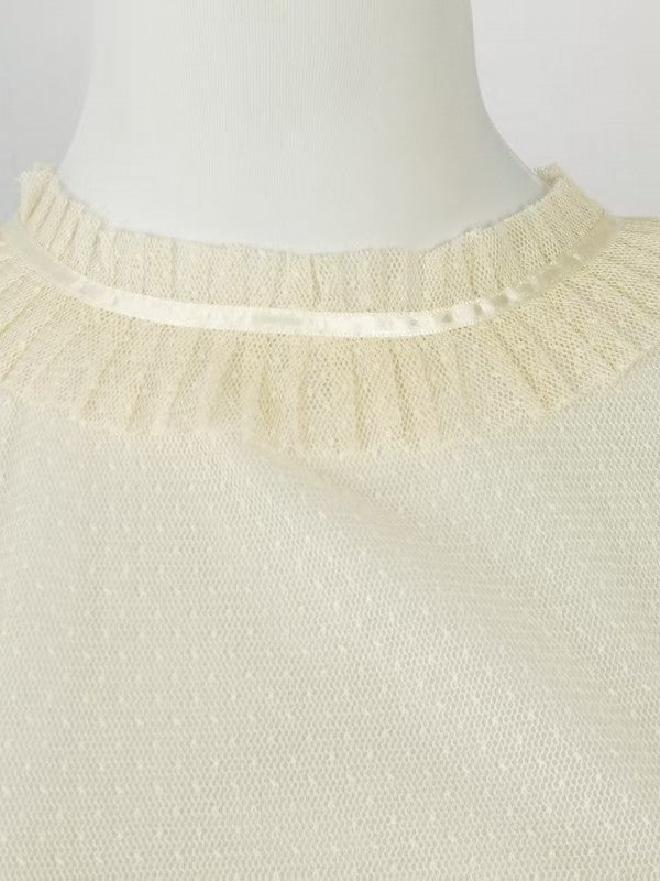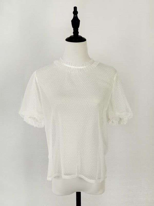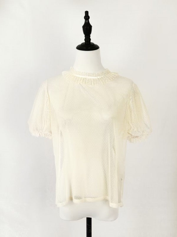 Short sleeved dotted yarn stand up collar with bubble sleeves for inner wear